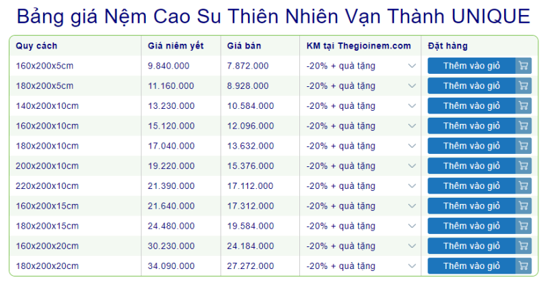 - Nệm cao su Vạn Thành Unique